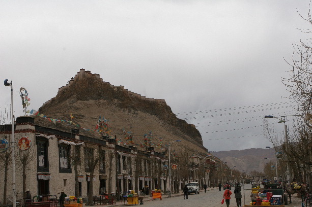 羊湖与雅江之间是拉轨岗日山,其主峰为宁金抗桑峰——汉语意为“夜叉神住在高贵的雪山上”,海拔7206米,就凌驾于圣湖之上。可惜由于阴天,没有看到。宁金抗桑峰的终年积雪发育了数量众多的冰川,其南麓的卡若拉冰川末端一直延伸到公路边不足300米的地方,由于它的慷慨延伸,我们可以毫不费力地在路边一睹其雄伟的身姿。