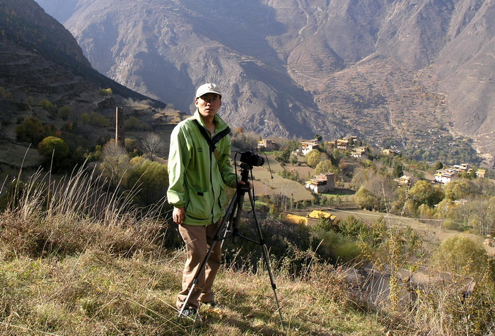 (笔者在横断山脉中考察碉楼)