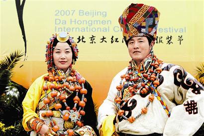 当秋和藏族小伙多登两个人从四川的德格地区赶了数百里山路到康定,在两名武警的护送下,经成都抵达北京。两个人都是当地的医生,共带了两套藏服进京参加25号大红门国际服装节的展演活动。当秋表示,即使是在当地,这样贵重的传统藏服也不多见了,由于太贵重,自己平常都不怎么舍得穿,只是在遇到特别重大的节日才穿一次。