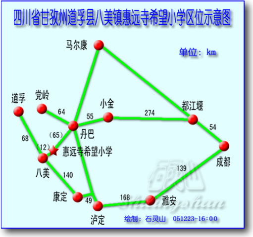 四川省甘孜州道孚县八美镇惠远寺希望小学交通区位示意图